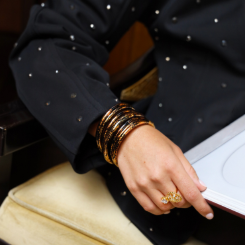 A bangle that straddles the line between shadow and flame, Koi Leopard exudes a beauty that is both untamed and refined—fierce in its quiet power, magnetic in its elegance.