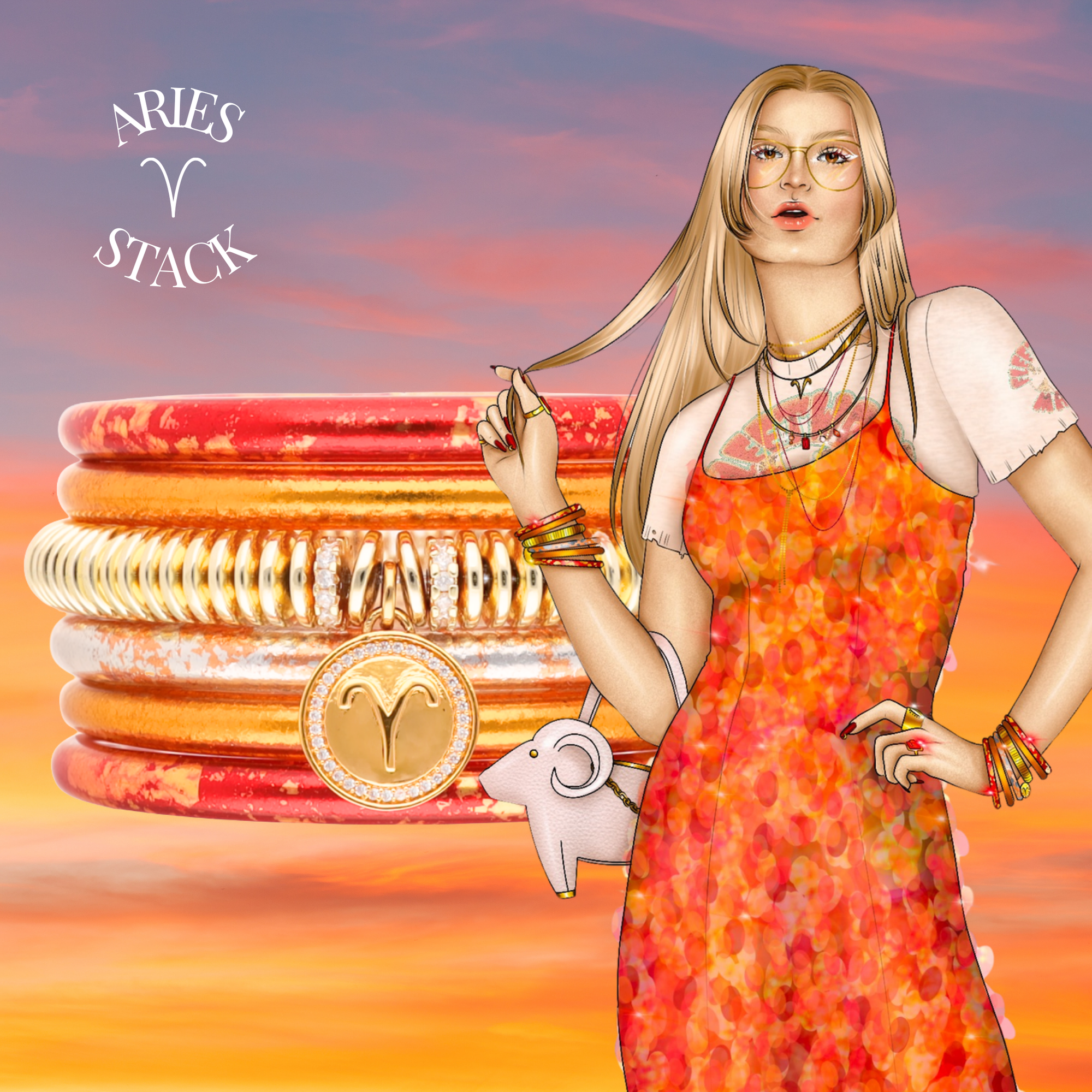 The Aries Zodiac Bangle Bracelet Stack Includes: