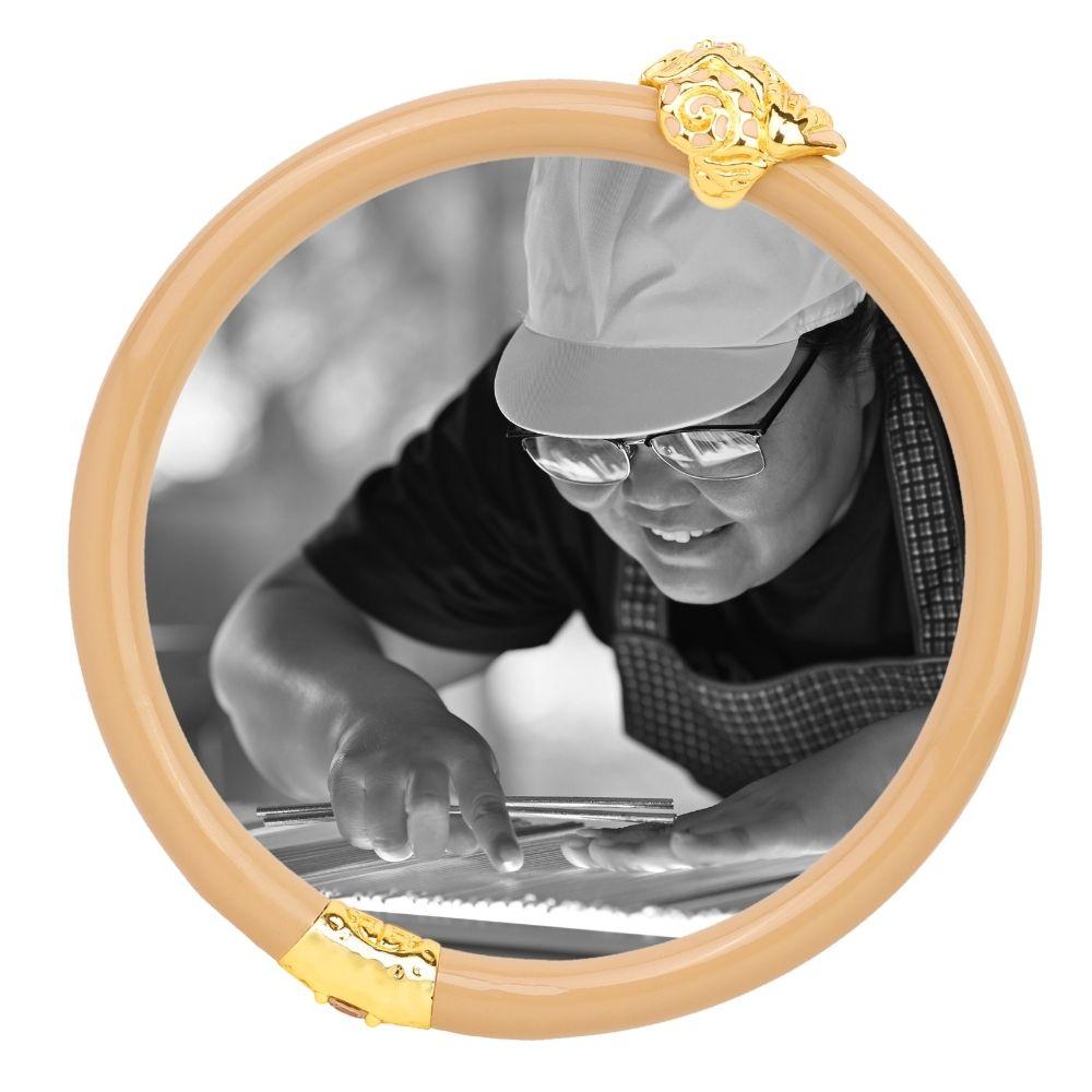 The main visionary artisan behind this bangle is Pukki, whose meticulous craftsmanship brings this piece to life. Handcrafted in Bangkok, each bangle is a testament to artistry and tradition, blending modern design with timeless techniques. Made with care, it reflects the skill and dedication of its maker, ensuring a piece that is as meaningful as it is beautiful.